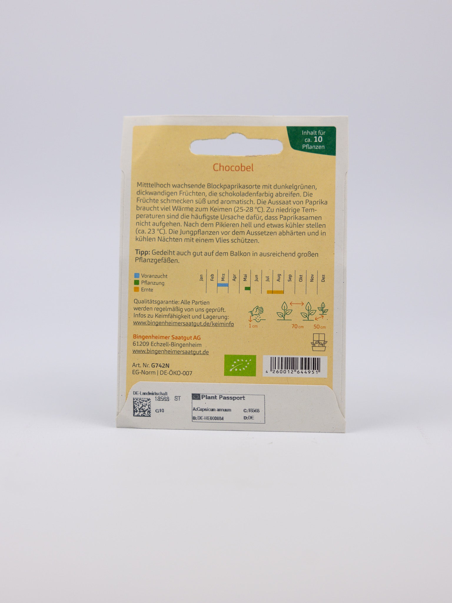 Chocobell: This variety is dwarf to medium-tall with peppers thick-walled, exceptionally aromatic taste. When ripened, the pepper has a special red-brown colour. Medium-early variety with fruits weighing of about 160g. Cholobell is especially suitable for growing under cover.